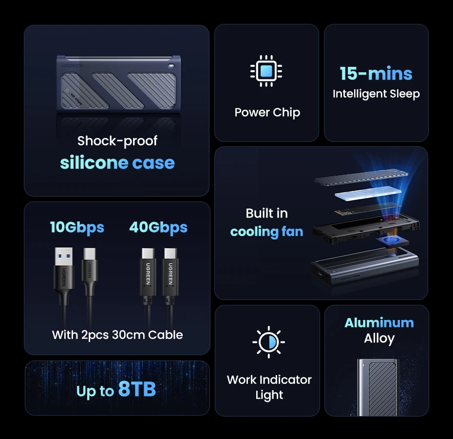 40Gbps M.2 Nvme Enclosure with Cooling Fan Anti-Drop M.2 SSD Case for Macbook M.2 Enclosure for Thunderbolt 3/4//3.2/3.1